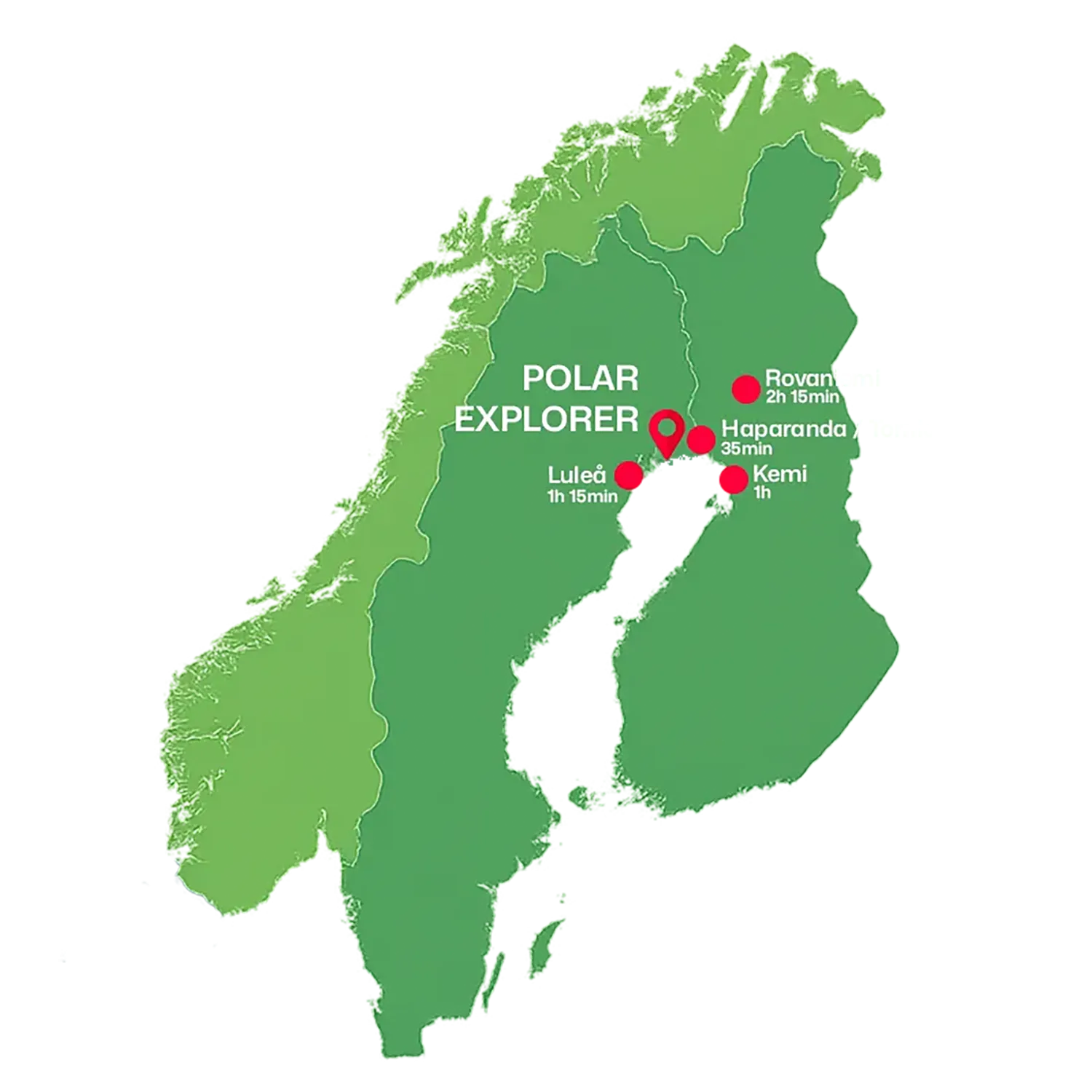 Shuttle bus from Rovaniemi, Kemi, Tornio, Haparanda & Luleå (extra charge)